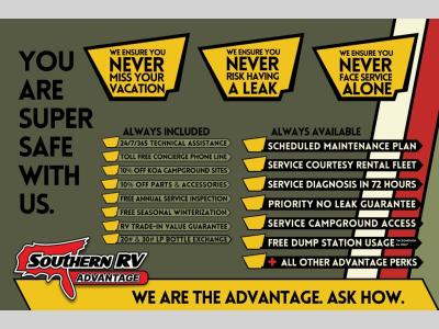 Southern RV is not responsible for any misprints, typos, or errors found in our website pages. Any price listed excludes sales tax, registration tags, and delivery fees. Manufacturer pictures, specifications, and features may be used in place of actual units on our lot. Please contact us @770-477-0552 for availability as our inventory changes rapidly. All calculated payments are an estimate only and do not constitute a commitment that financing or a specific interest rate or term is available.