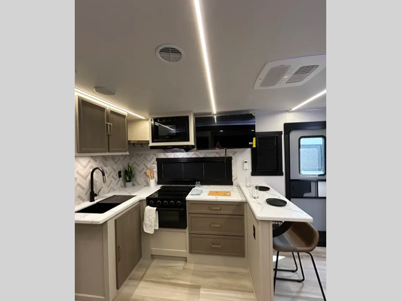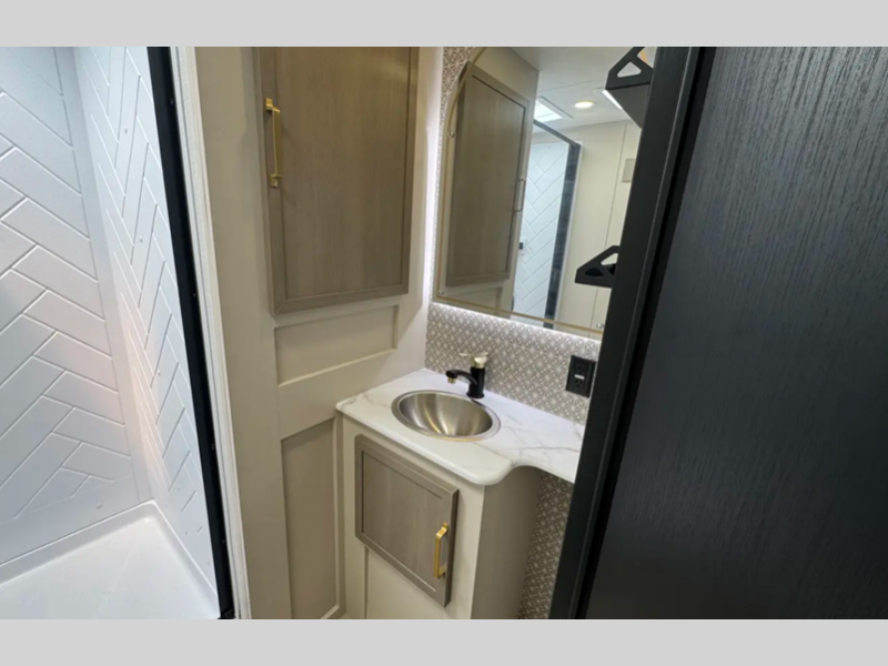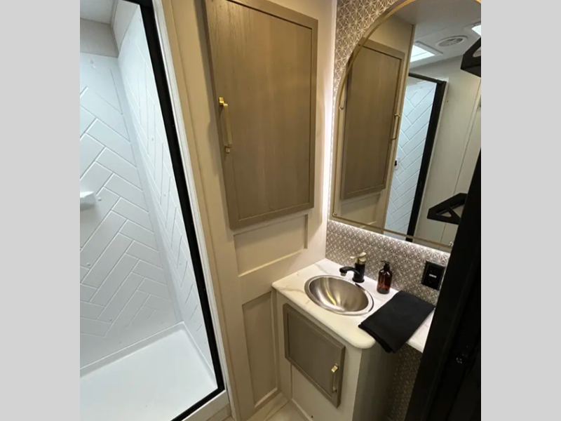 Sleeps 2 Slides 2 Length 31 ft 5 in Ext Width 8 ft Ext Height 11 ft 2 in Hitch Weight 1035 lbs Dry Weight 7553 lbs Cargo Capacity 2282 lbs Fresh Water Capacity 49 gals Grey Water Capacity 60 gals Black Water Capacity 30 gals Available Beds Custom King Refrigerator Type 12V Refrigerator Size 10 cu ft Cooktop Burners 3 Number of Awnings 1 Water Heater Type On Demand Tankless AC BTU 18000 btu TV Info 40" LED Smart TV Awning Info 22' with LED Lights Axle Count 2 Washer/Dryer Available Yes Shower Type Walk-In Shower Electrical Service 50 amp Similar Floorplans