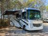 Each coach is built on a Ford F53 chassis, and includes a StrongholdVBL roof, floor and sidewalls, a one-piece, seamless, fiberglass front cap, four-wheel anti-lock brakes, a 5,000 lb. rear hitch receiver. The 120-inch panoramic windshield along with the vinyl graphics provides great views on the road and turned heads when entering the campgrounds. Inside, you will appreciate the hardwood cabinet doors, drawers and fascia with LED accent lighting, two air conditioners with energy management system and standard 200W solar panel with dual controller and second house battery.