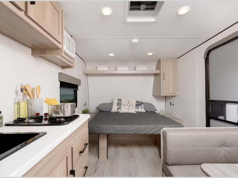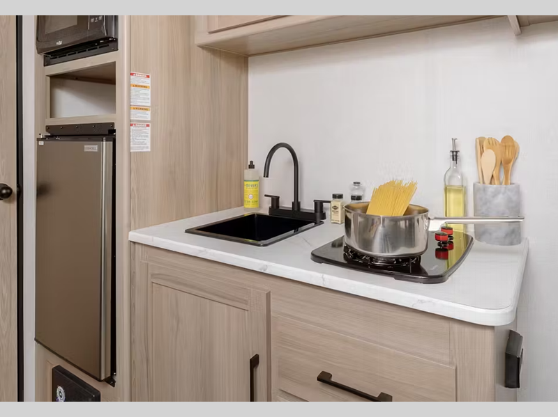 Sleeps 3 Length 20 ft 8 in Ext Height 9 ft 9 in Int Height 6 ft 6 in Hitch Weight 368 lbs Dry Weight 3061 lbs Cargo Capacity 1239 lbs Fresh Water Capacity 21 gals Grey Water Capacity 34 gals Black Water Capacity 34 gals Tire Size ST215/75R14D Furnace BTU 20000 btu Available Beds Queen Refrigerator Type 12V Refrigerator Size 3.3 cu ft Cooktop Burners 2 Number of Awnings 1 LP Tank Capacity 20 lbs Water Heater Type Tankless Awning Info 8' Power Axle Count 1 Number of LP Tanks 1 Shower Type Standard Electrical Service 30 amp Similar Floorplans