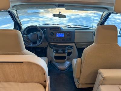 Each coach is built with a fiberglass front cap plus a one-piece upper rear cap for added protection. The touchscreen dash radio and a back-up monitor provides hassle-free driving, and the spacious interior will have you feeling right at home. A Ford E-Series chassis provides a durable foundation to your RV, and there are even models available with a Chevy chassis!