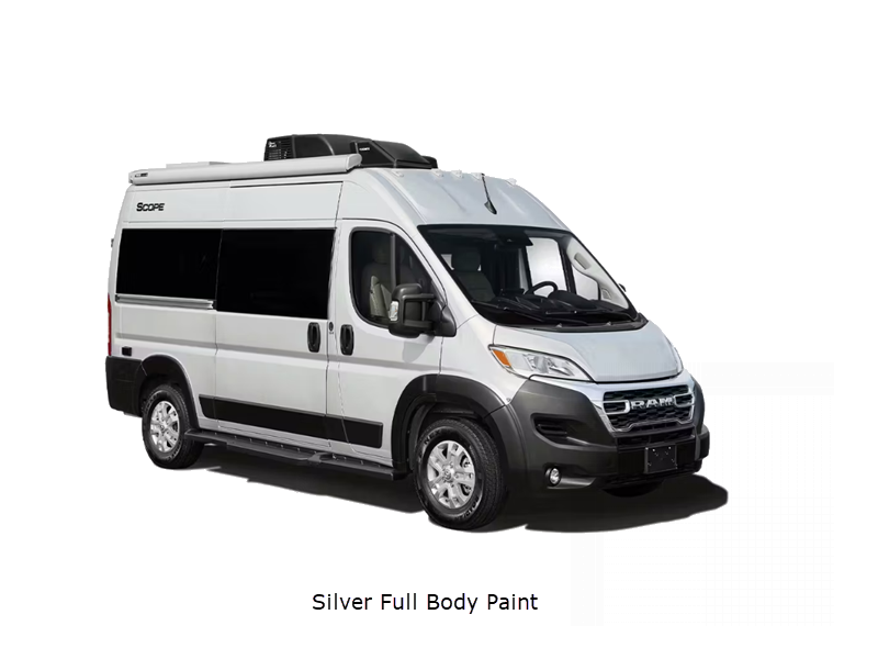 Sleeps 2 Length 17 ft 11 in Ext Width 6 ft 8 in Ext Height 9 ft 5 in Int Height 6 ft 3 in Interior Color Alpine White Exterior Color Silver or White Full Body Paint; Ceramic Gray (US Only), Granite Crystal (Canada Only) Hitch Weight 5000 lbs GVWR 8550 lbs Fresh Water Capacity 16 gals Grey Water Capacity 15 gals Black Water Capacity 4.75 gals Furnace BTU 14300 btu Generator 2800 Gas Fuel Type Gasoline Engine 3.6L Pentastar V6 Chassis RAM ProMaster 1500 XT Horsepower 276 hp Fuel Capacity 24 gals Wheelbase 136 in Available Beds Flip-Up Bed Torque 250 ft-lb Refrigerator Type Single Door 12 Volt electric Cooktop Burners 1 LP Tank Capacity 24.78 lbs. Water Heater Capacity 2.64 gal Water Heater Type Truma Combi Eco LP AC BTU 11000 btu Gross Combined Weight 11500 lbs Shower Type Wet/Bath Shower Electrical Service 30 amp Solar Wattage 200 watts -