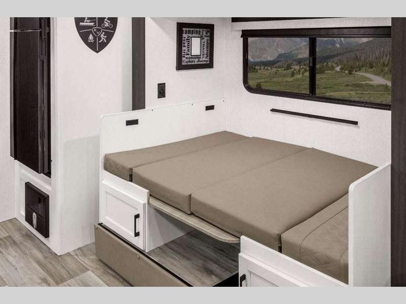 Sleeps 5 Slides 1 Length 25 ft Ext Width 7 ft 6 in Ext Height 10 ft 5 in Int Height 6 ft 6 in Interior Color Chestnut, Fawn Hitch Weight 650 lbs GVWR 5900 lbs Dry Weight 4420 lbs Cargo Capacity 1480 lbs Fresh Water Capacity 36 gals Grey Water Capacity 30 gals Black Water Capacity 30 gals Tire Size 15" Furnace BTU 20000 btu Number Of Bunks 2 Available Beds RV Queen Refrigerator Type 12V Refrigerator Size 8 cu ft Cooktop Burners 3 Shower Size 27" Number of Awnings 1 Axle Weight 3770 lbs LP Tank Capacity 20 lbs. Water Heater Type Tankless Awning Info 17' Axle Count 2 Number of LP Tanks 2 Shower Type Neo-Angled Solar Wattage 200 watts -