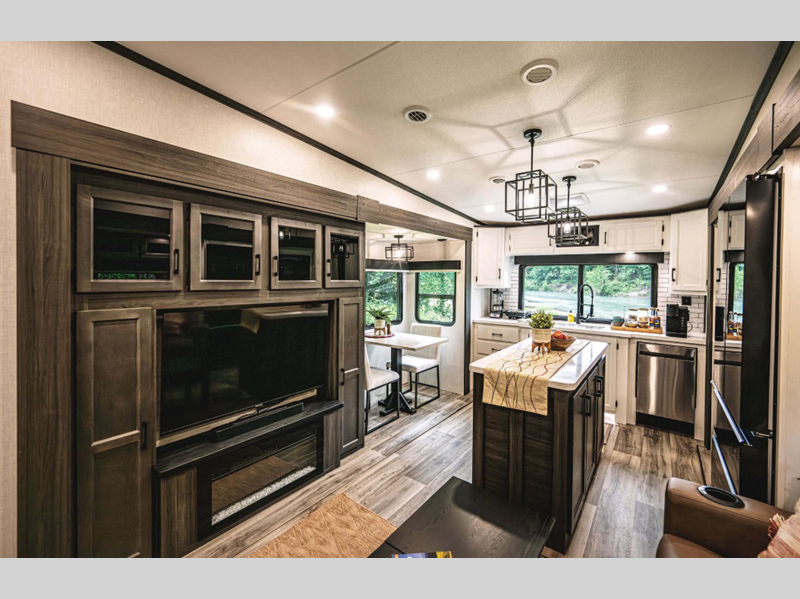 Sleeps 6 Slides 5 Length 41 ft 7 in Ext Width 0 ft Ext Height 0 ft Interior Color Blake, Doe Hitch Weight 3150 lbs GVWR 14995 lbs Dry Weight 12510 lbs Cargo Capacity 2485 lbs Fresh Water Capacity 76 gals Grey Water Capacity 100 gals Black Water Capacity 50 gals Tire Size 16" Furnace BTU 30000 btu Available Beds King Refrigerator Type 12V Double Door Cooktop Burners 3 Shower Size 48" Number of Awnings 2 Axle Weight 9360 lbs LP Tank Capacity 30 lbs Water Heater Type On Demand Tankless AC BTU 28500 btu TV Info LR 50" LED Smart TV, Awning Info 18' Electric with LED Lights Axle Count 2 Washer/Dryer Available Yes Number of LP Tanks 2 Shower Type Shower w/Seat Electrical Service 50 amp Similar Floorplans