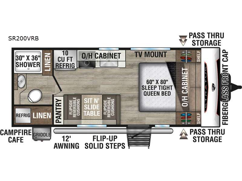 Venture RV Stratus Ultra-Lite travel trailer SR200VRB highlights: Front Queen ... more about Stratus SR200VRB