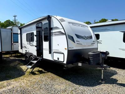“Hit the road with ease in the 2023 Venture RV Sonic Lite SL150VRB, a lightweight travel trailer that combines modern comfort, smart design, and adventure-ready convenience in one sleek package.”