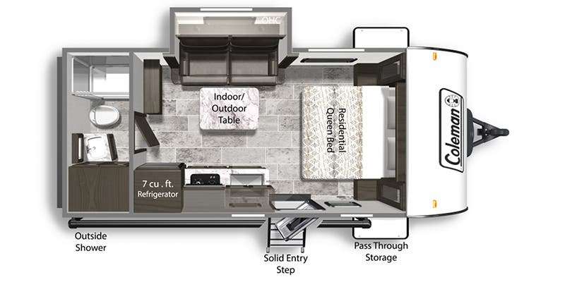 On the outside, the Coleman Lite 1805RB features an easy-to-use power awning, outdoor speakers, and a sturdy entry step, making it ideal for outdoor gatherings and relaxing at your campsite. With a dry weight of around 3,500 pounds, it’s towable by many mid-sized vehicles, offering a hassle-free experience whether you're headed to the mountains or the coast. This travel trailer provides the perfect balance of comfort, convenience, and portability for your next adventure.